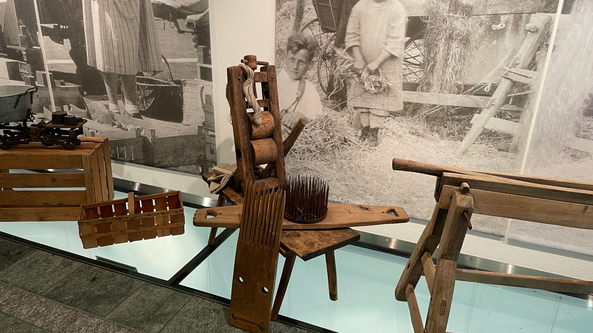 in der Ausstellung verbinden Sie mit dem Leben in früheren Zeiten. Einige davon werden mit Videos ergänzt.