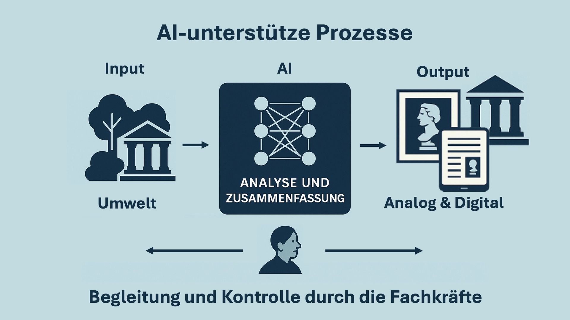 Das lernende und lehrende Museum der Zukunft vernetzt seine historischen Bestände mit moderner KI, um Wissen kontinuierlich zu erweitern und zugänglich zu machen. Durch automatische Analyse grosser Datenmengen kann es unter Umständen sogar neue Zusammenhänge erkennen, welche bisher verborgen waren.