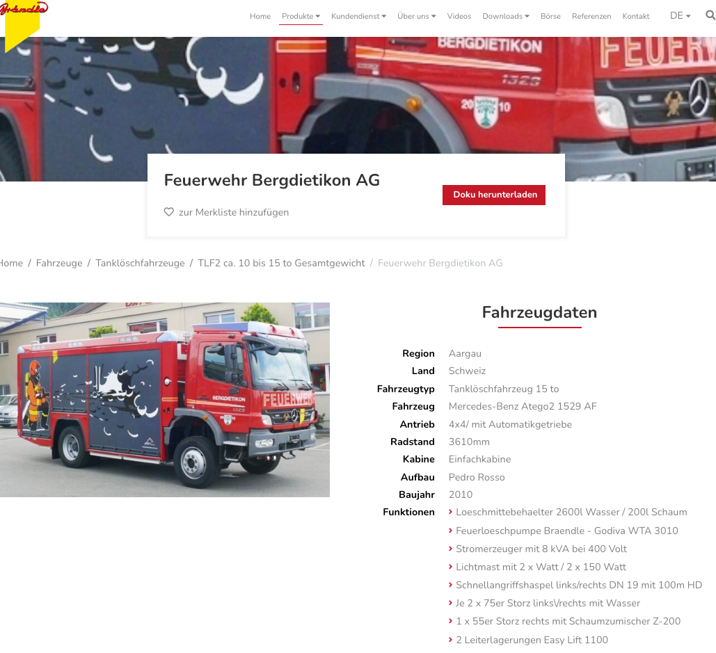 Über eine einfache Suche über Google, wurde eine Webseite gefunden, welche zum Lieferanten des Feuerwehrwagens (TLF) gehört.