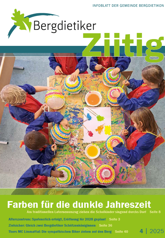 Die Bergdietiker Ziitig (DBZ) ist unser Infoblatt und Publikations-Forum für Bergdietikon. Die Bergdietiker Ziitig erscheint seit 1993 viermal jährlich und enthält Wissenswertes über die Gemeindeverwaltung, die Schule, die Kirchgemeinden und die Vereine von Bergdietikon. Die Ziitig wird gratis an alle Einwohnerinnen und Einwohner von Bergdietikon verteilt.